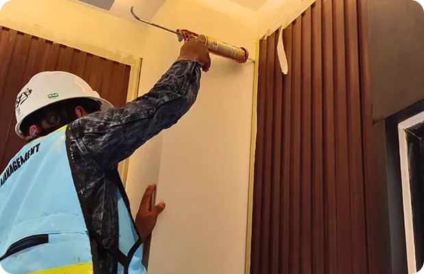 Di workshop kami, seluruh proses fabrikasi seperti pembuatan custom furniture, partisi, kabinet, hingga elemen interior lainnya dikerjakan oleh tim teknis berpengalaman dengan pengawasan kualitas yang ketat.